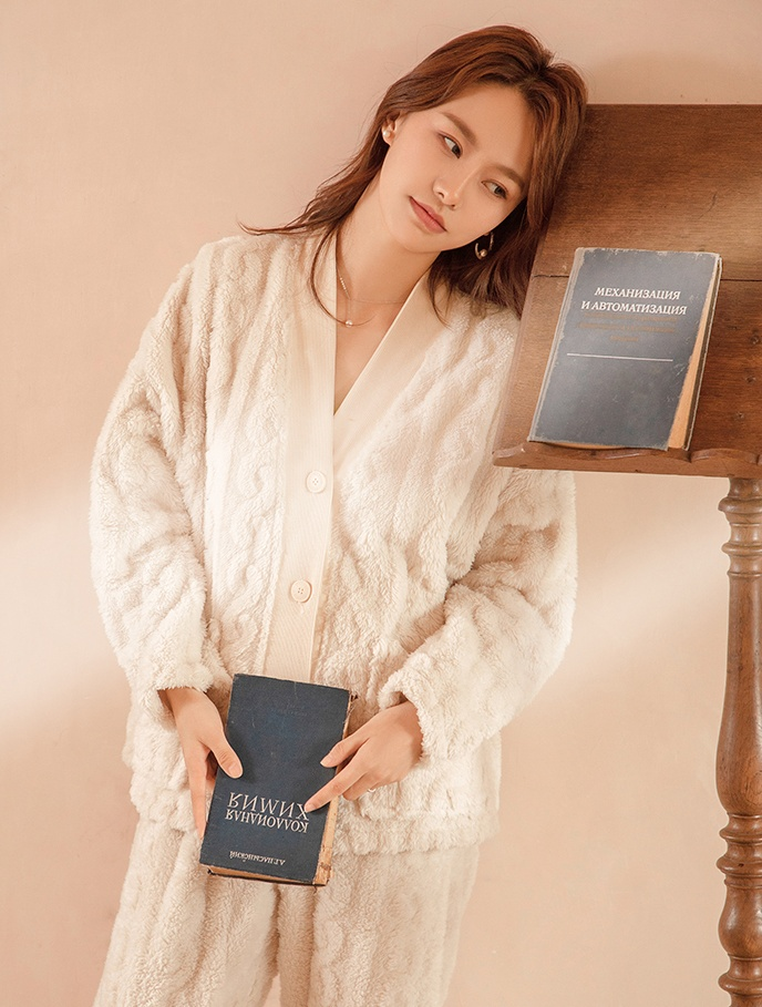 整套睡衣,都是采用法莱绒面料打造的,密度紧实,不容易掉毛、缩水 。