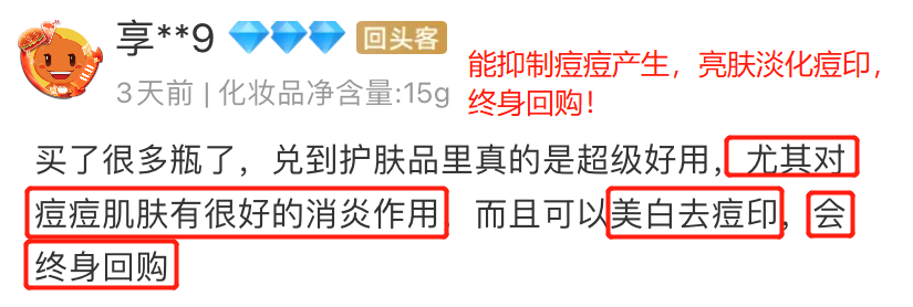 还添加了大牌都爱用的烟酰胺,并含量高达99.7%,另复配了维生素E、丹参、当归、枸杞协同抗老、亮肤。