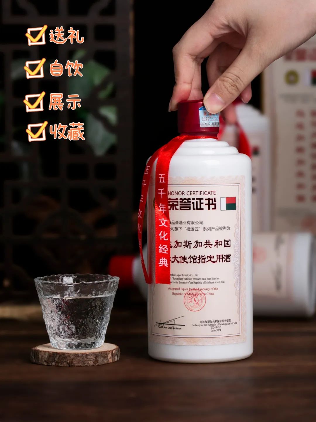 马达加斯加驻华大使馆指定用酒福运匠酒,自然发酵,传统酱香, 不仅好喝,还具有收藏价值,越久越香醇。