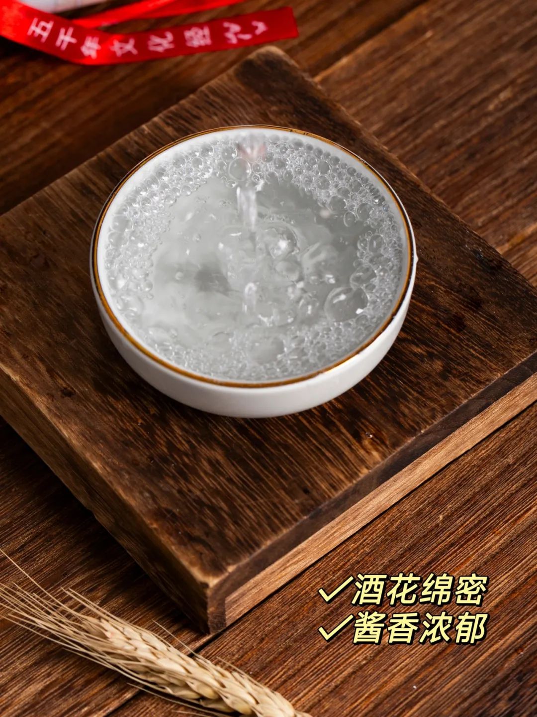 看看这酒花,颗粒饱满、颜色清亮,轻轻抿上一口,酱香浓郁,甘醇顺滑不易口干。