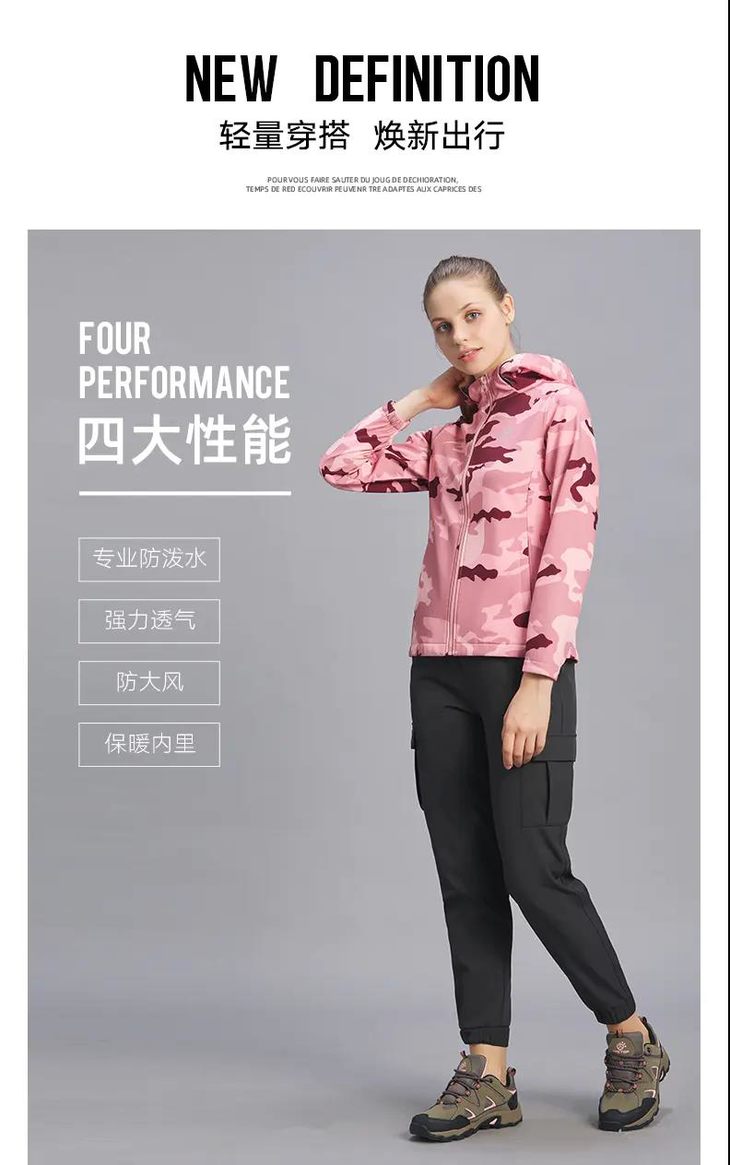 印花复合内里摇粒绒,防风保暖连帽设计