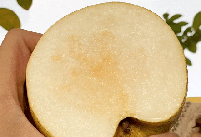 切片也只选用大果的中段,掐头去尾,这段的梨片薄厚均匀,果香味儿浓郁,酸甜度适中,是一颗梨的精华之所在。