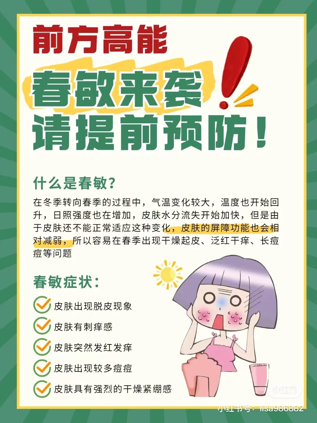 最近有很多宝宝来私信,皮肤一直反复过敏,又红又痒,自己是变成了敏感肌吗?其实这是春天快到了导致的春敏,为什么会春敏?遇到春敏该怎么办?今天带大家一起做一份攻略,轻松应对春敏。