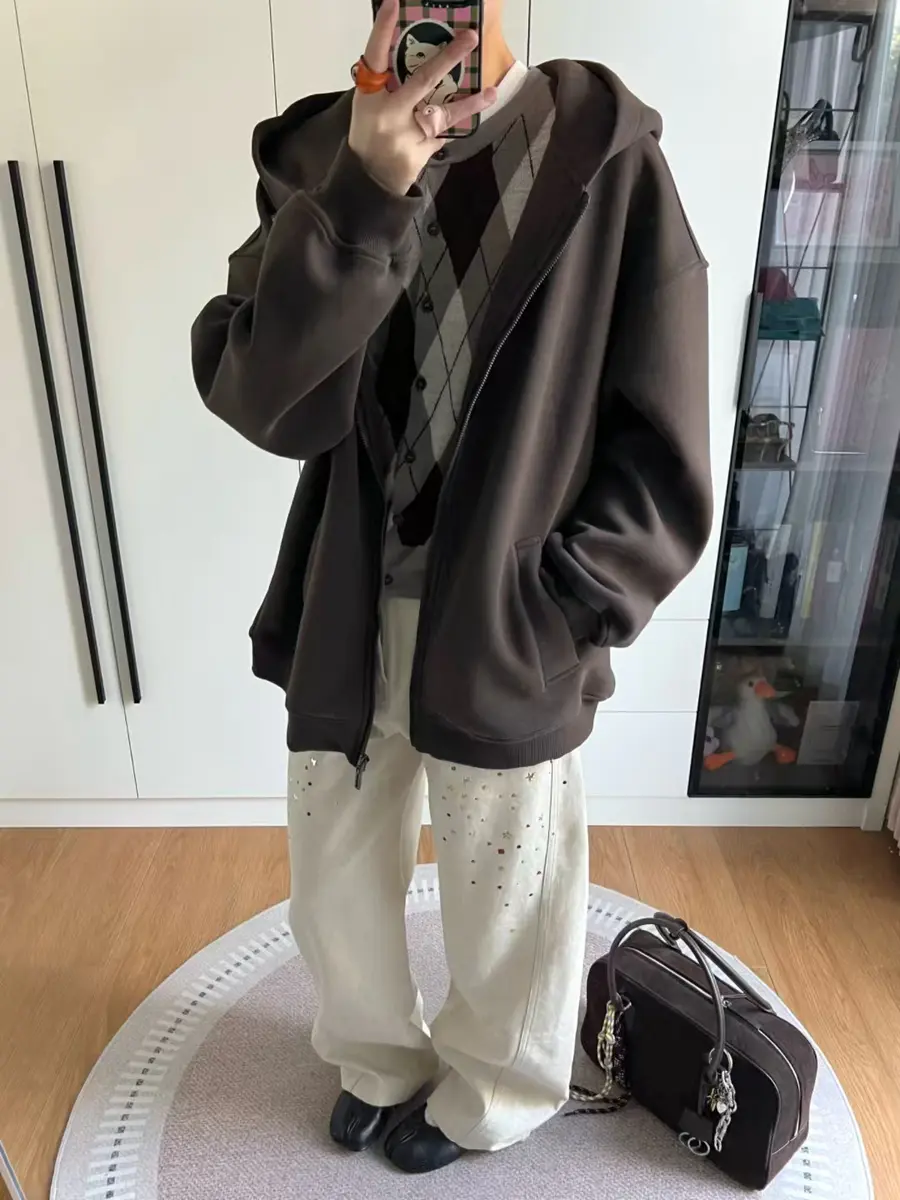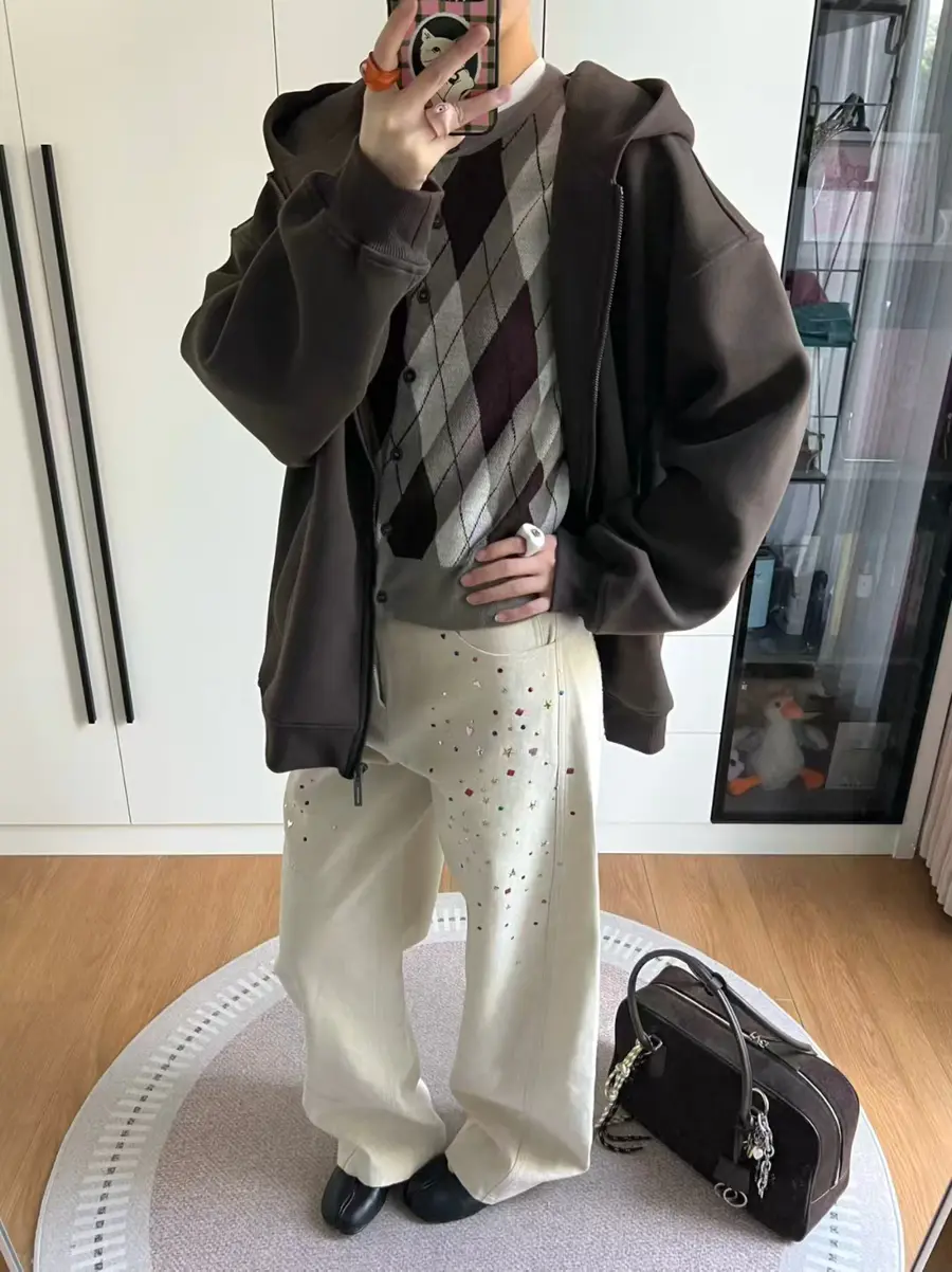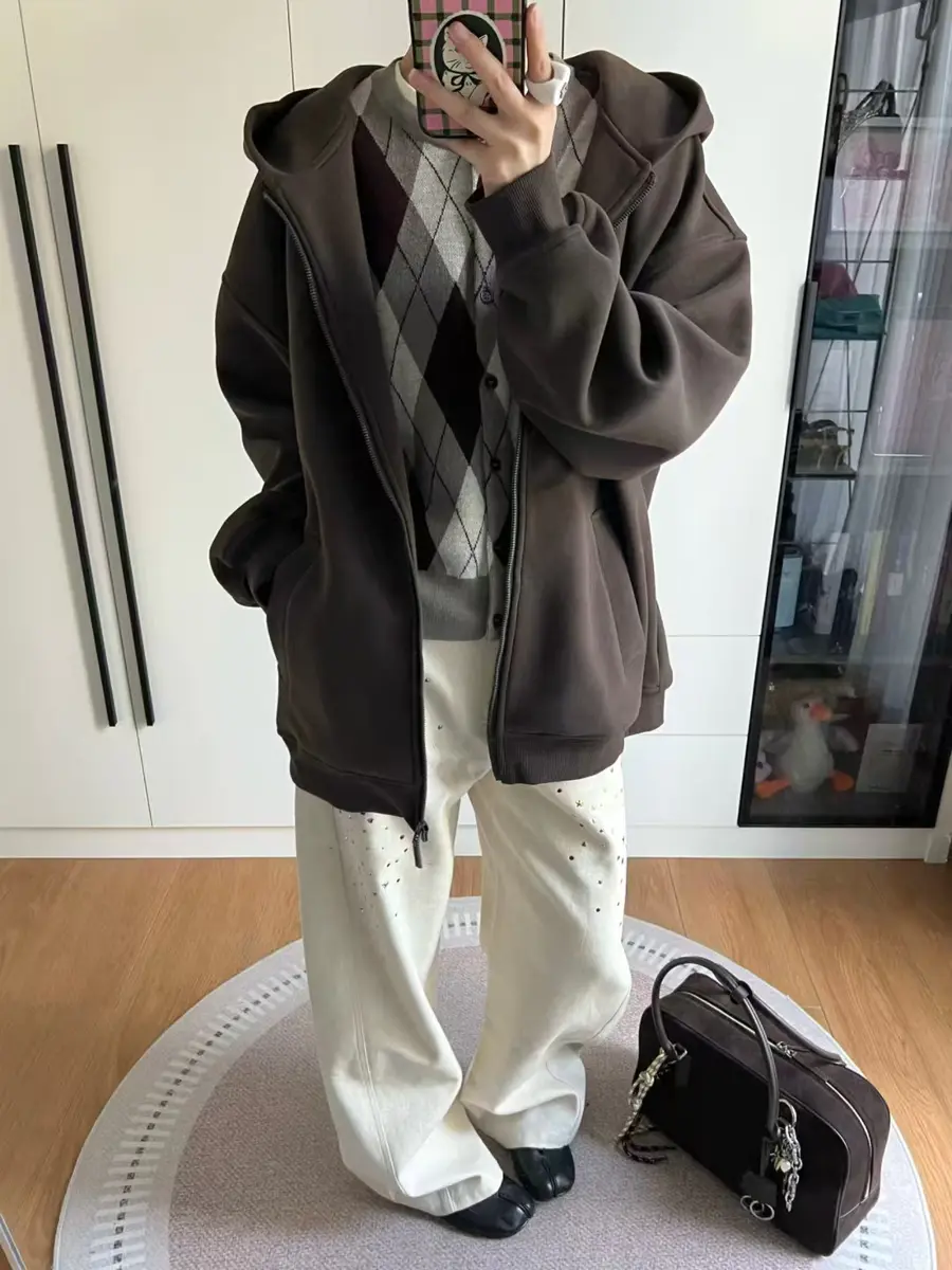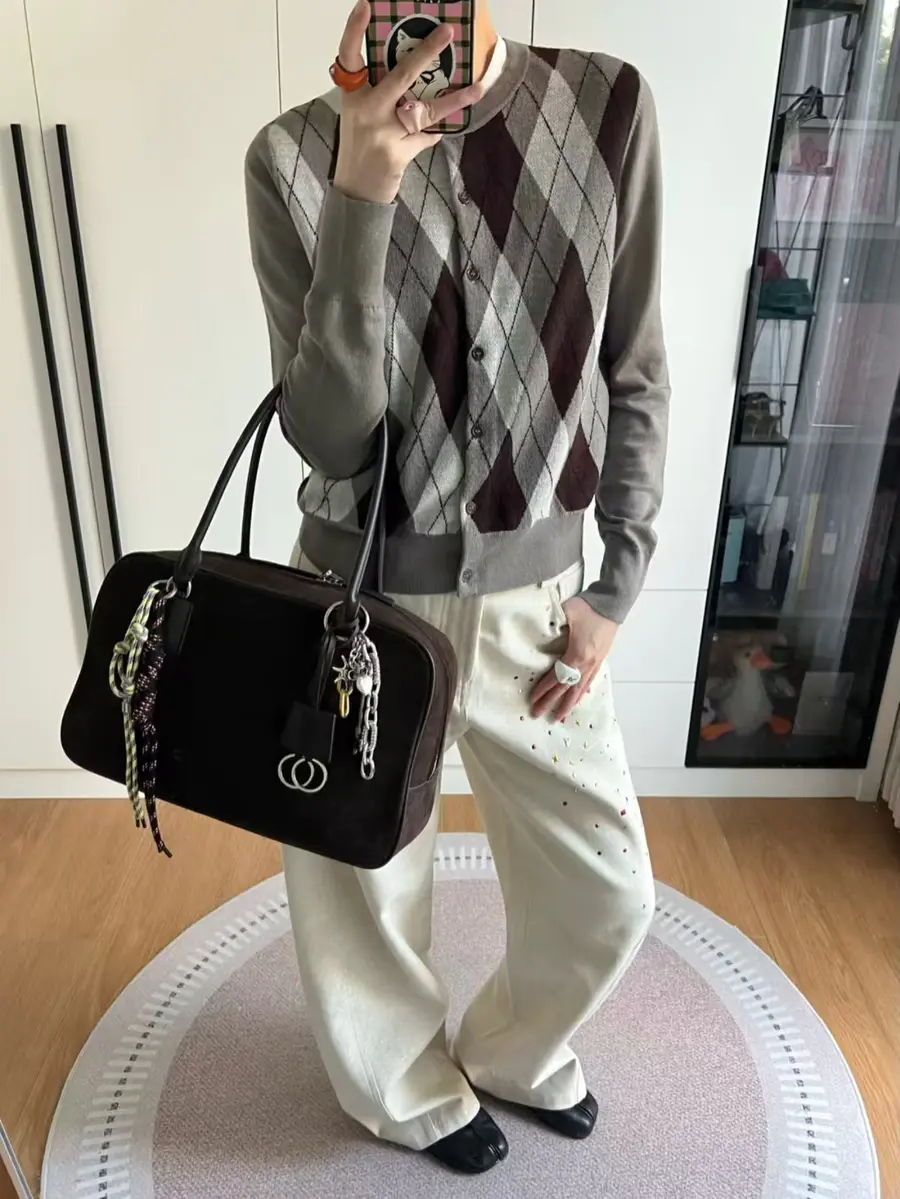 新品上身丨棕外套+菱格内搭,居家也能玩出复古叠穿潮✨