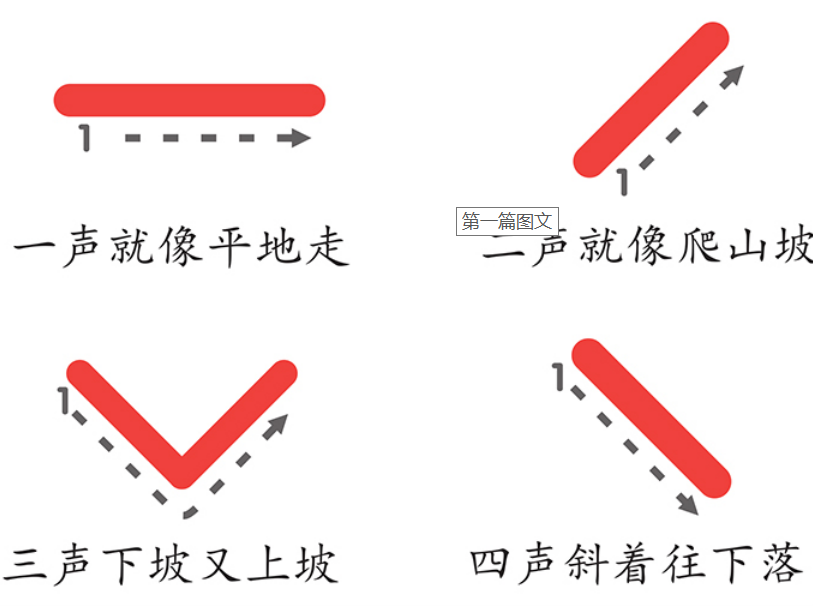 学四声:学习四声调,并组合韵母学习韵母的四声发音