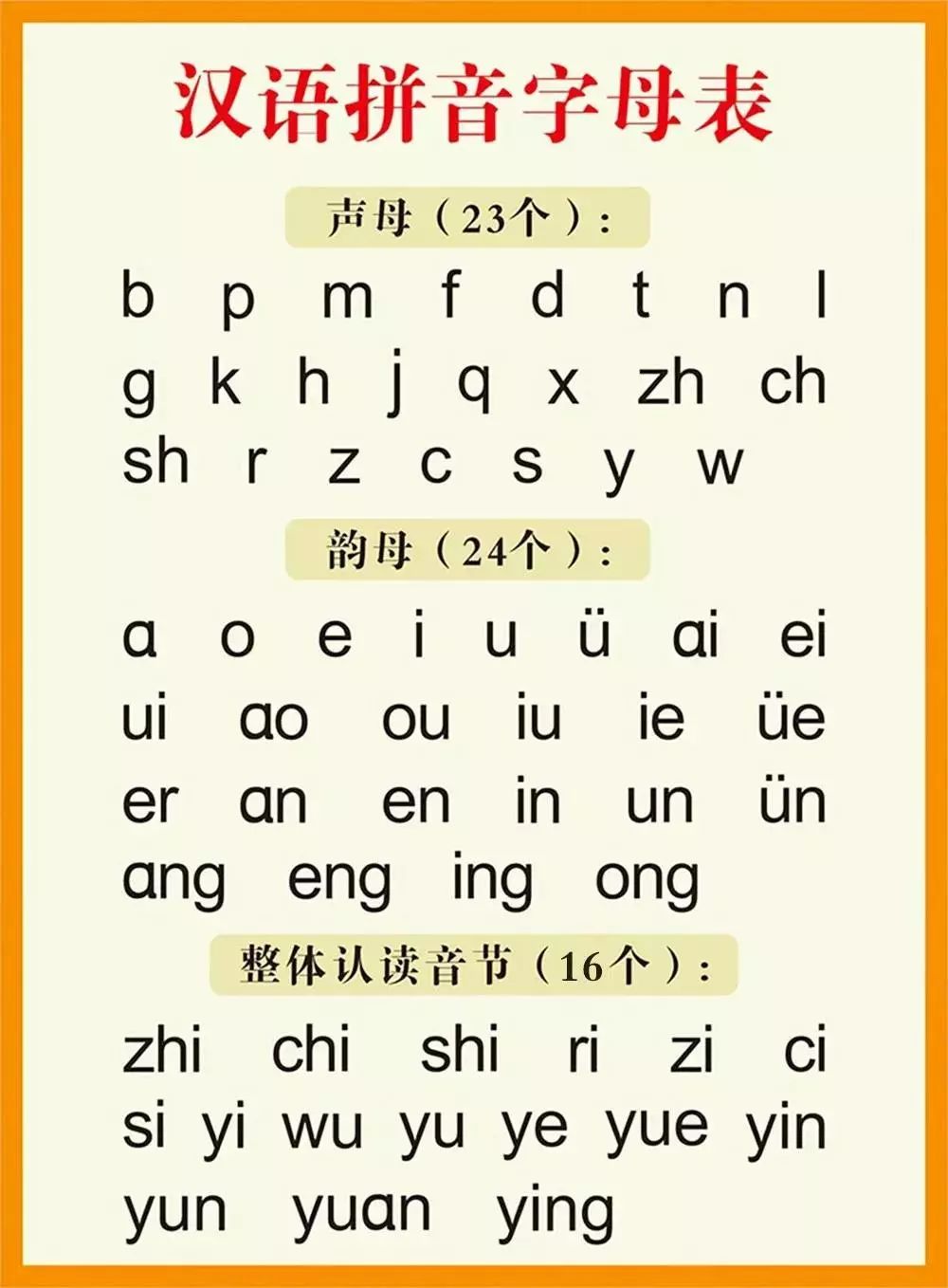 16个整体认读音节,用于训练孩子的拼读是否标准。