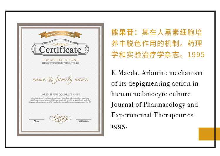 它的核心美白成分是韩国进口高浓度熊果苷。被称为“21世纪最理想的皮肤美白祛斑活性剂”。