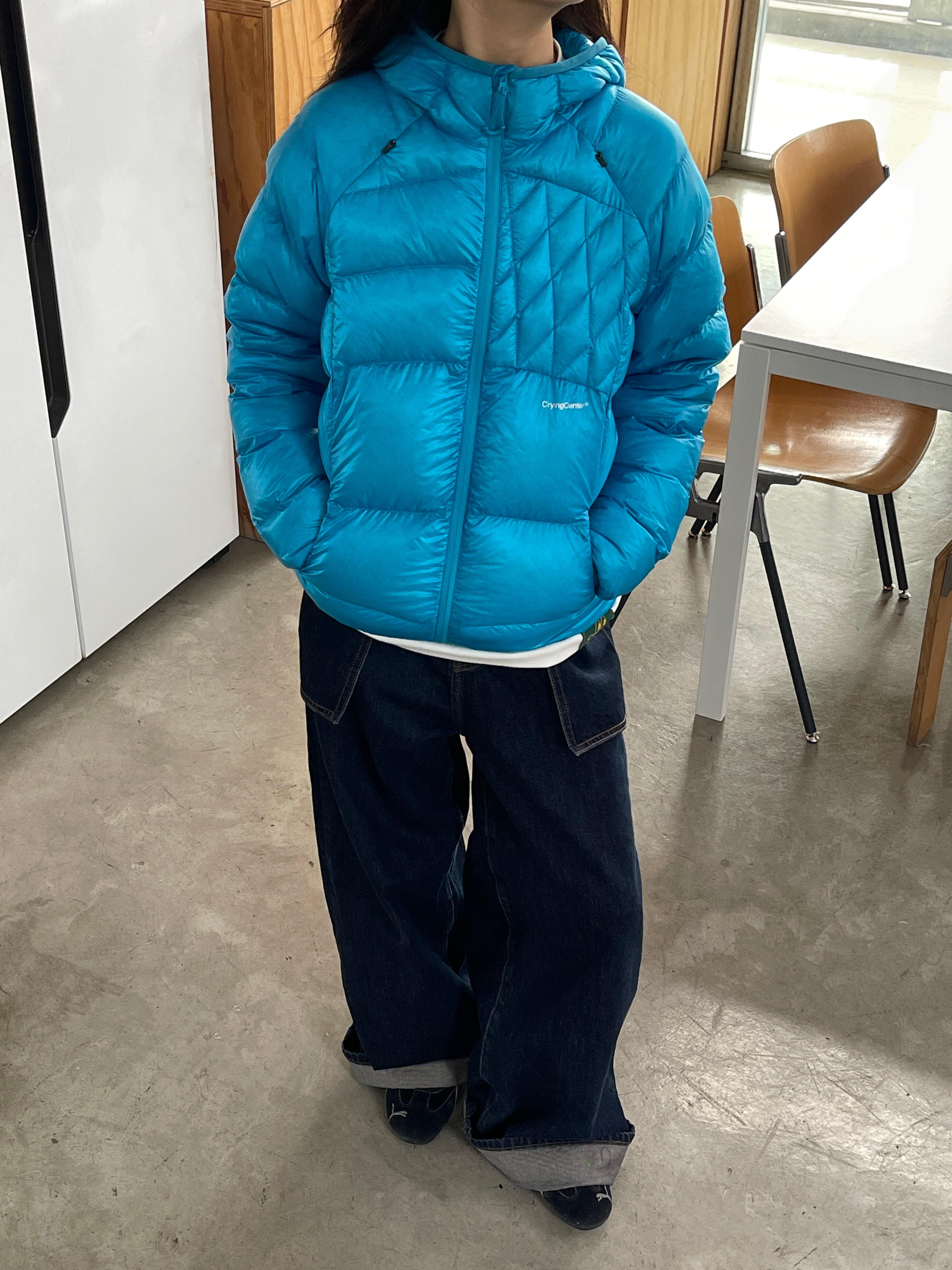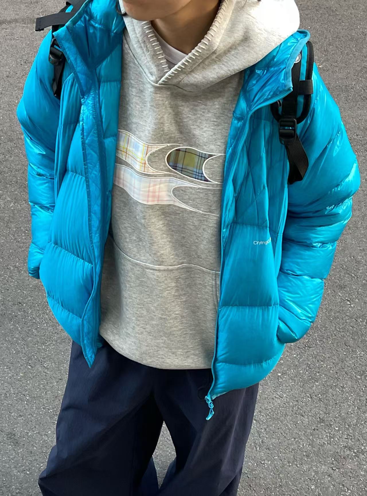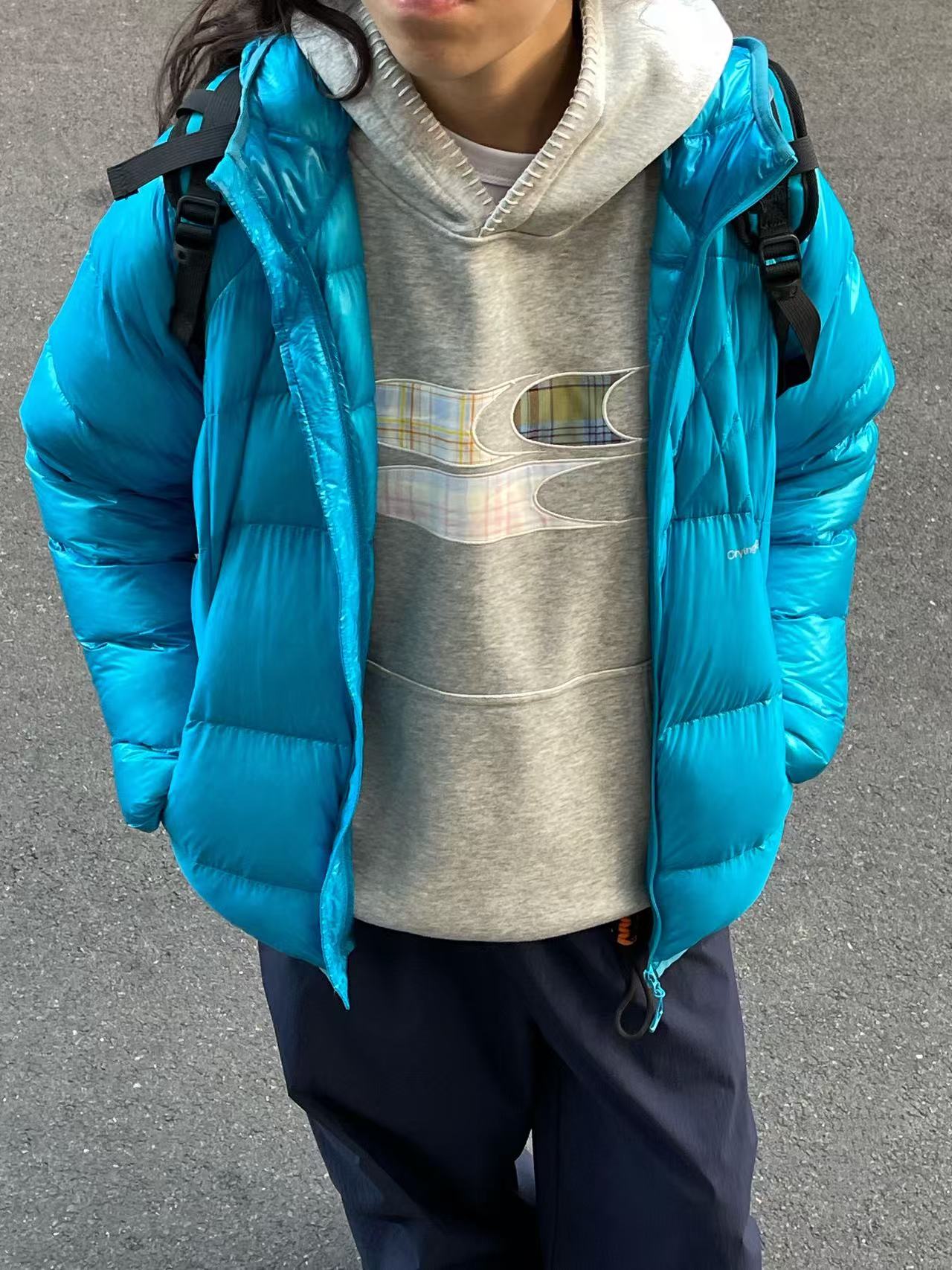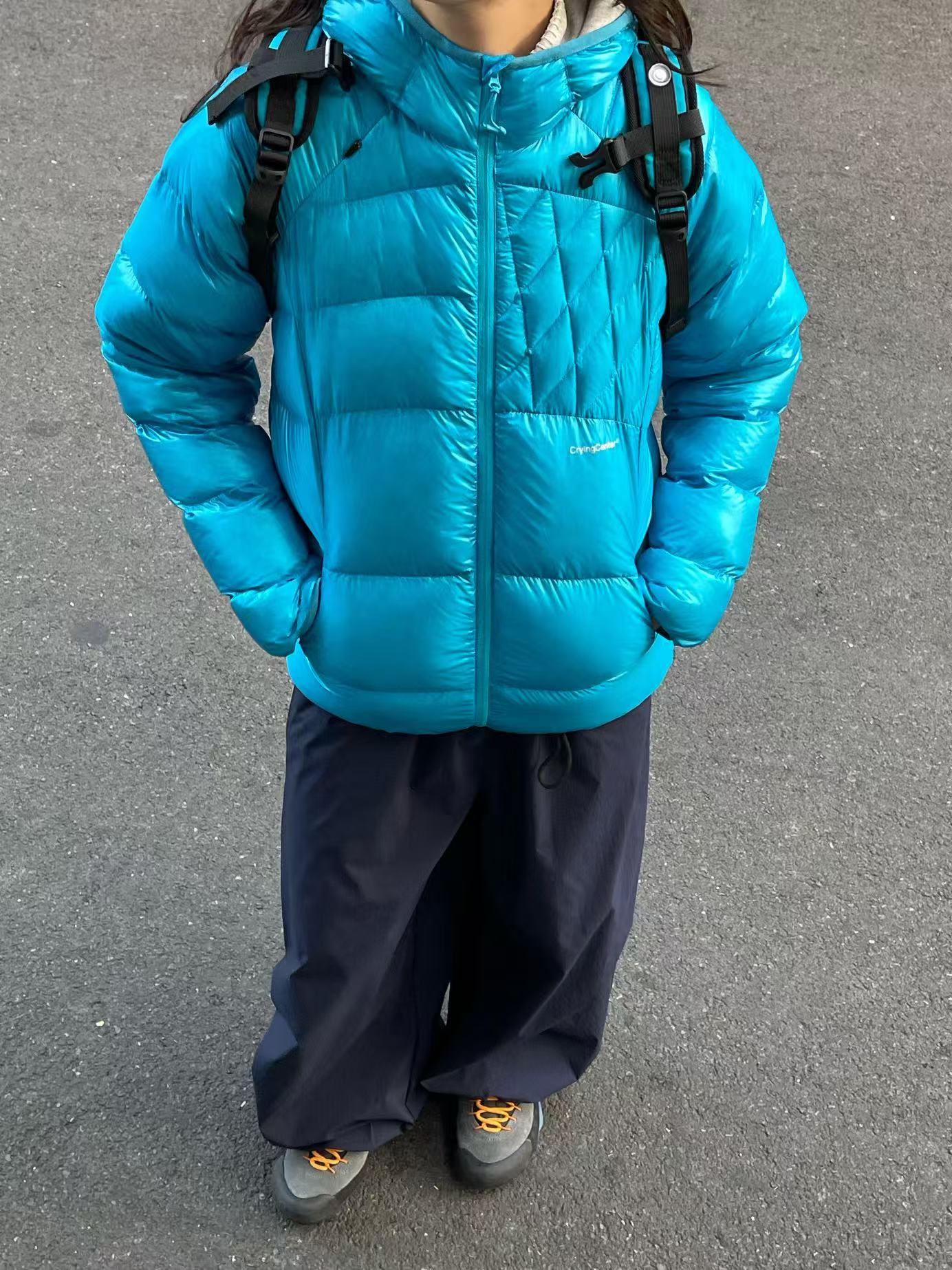 采用白鸭绒,保暖性很强但衣服本身非常轻巧!