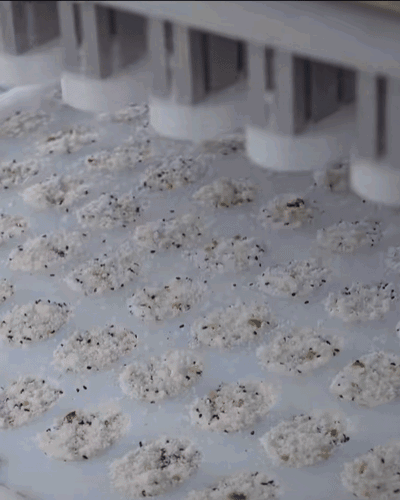为了保证口感均衡,每一款食材都必须经过单独处理,研磨成不同粗细的颗粒后,再经过均匀混合。