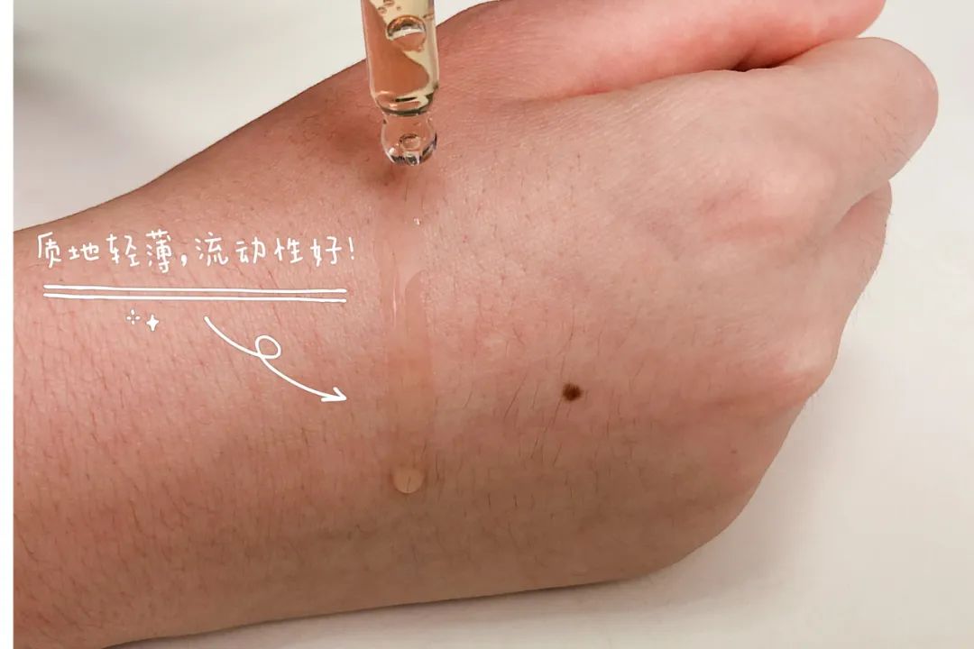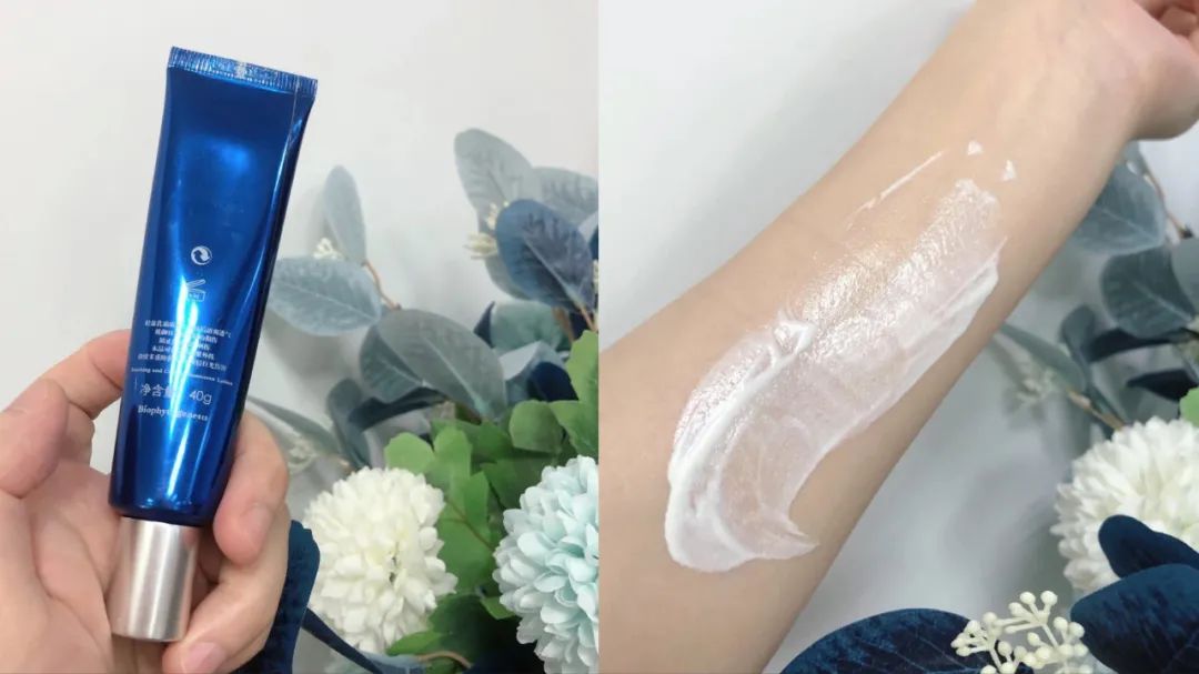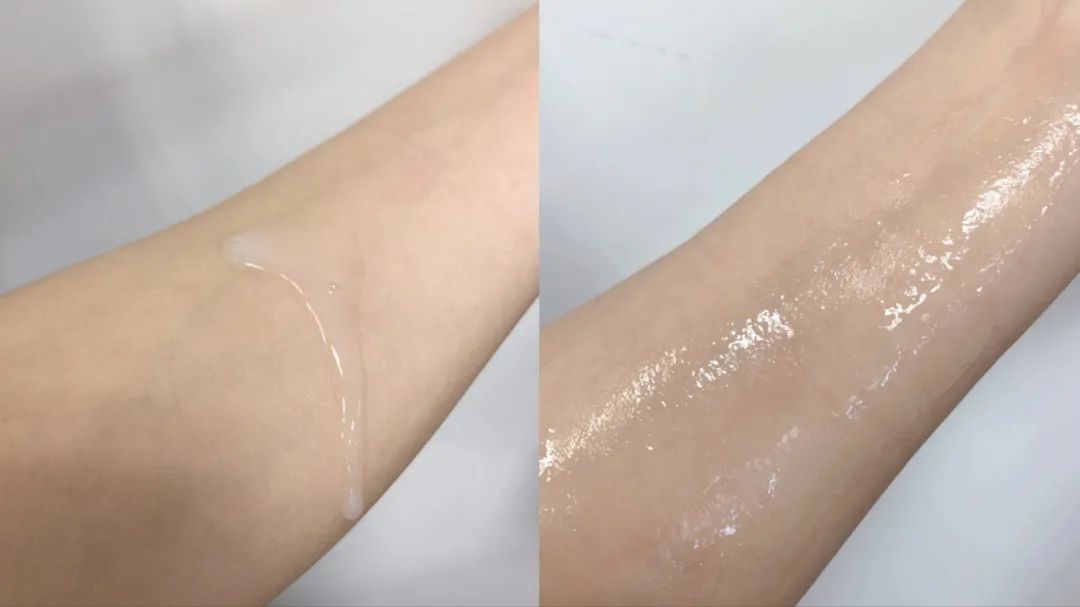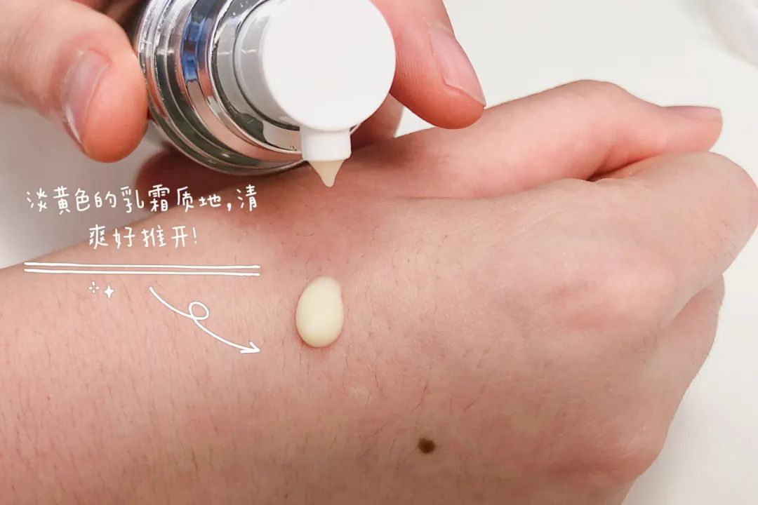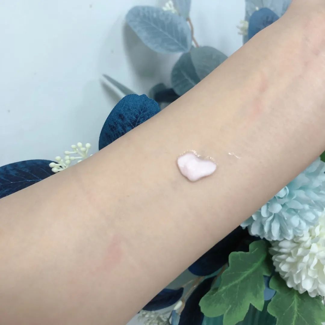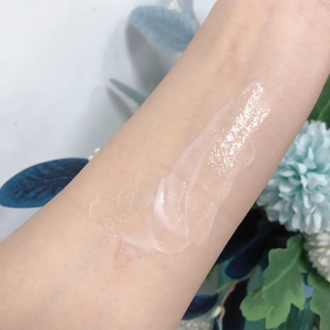 外观是略有点稠度的乳白色半透明质地,上脸后不显粘腻,悄悄地被“吸收”了,不会有明显的紧绷成膜感~