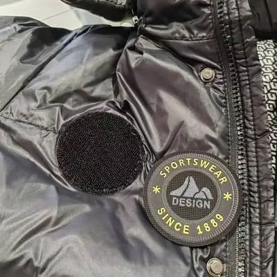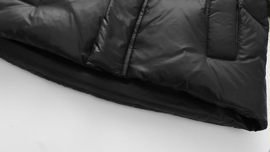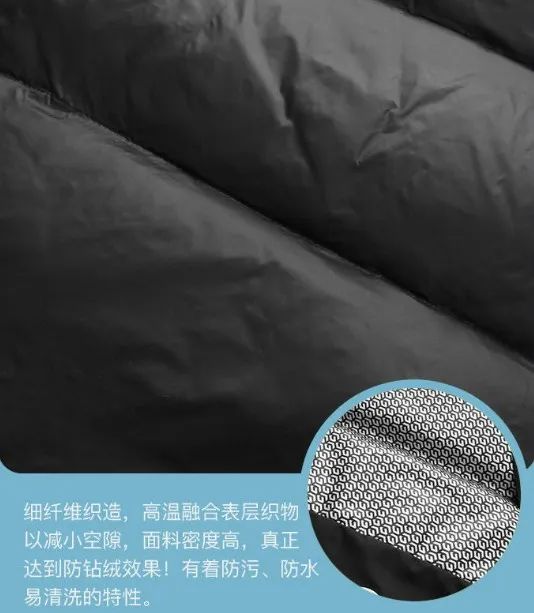 在90%鹅绒填充基础上,还特别添加了一个黑科技保暖贴片——黑金石墨烯发热层面料。