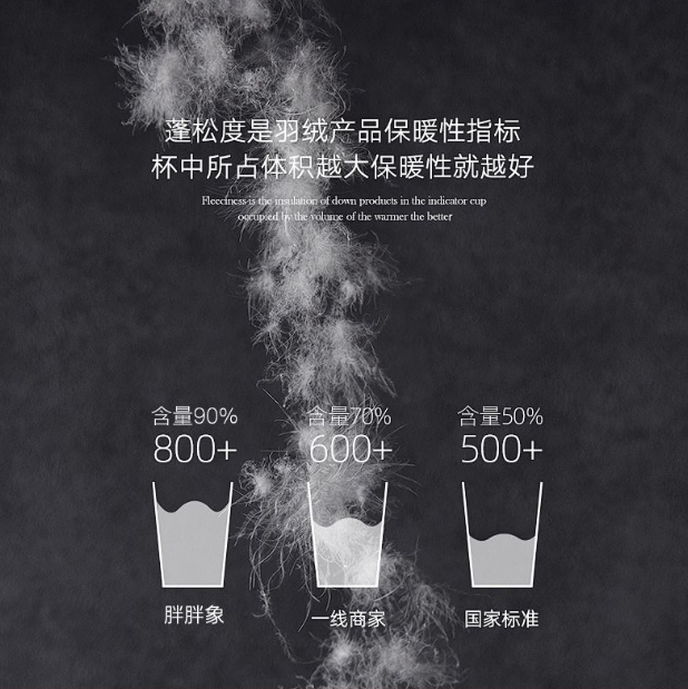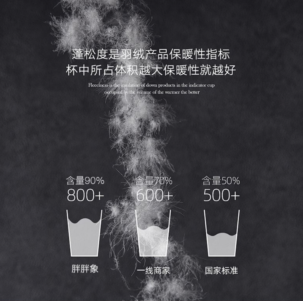 决定羽绒服饰暖不暖和,还有一个重要的指标——蓬松度。如果“含绒量”代表羽绒的“量”,那“蓬松度”代表的就是羽绒的“质”。