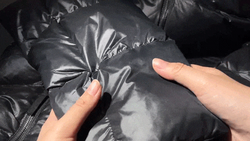 胖胖象这款羽绒服,蓬松度也是肉眼可见的,握在手里,伸开手的同时,绒朵会瞬间弹起。