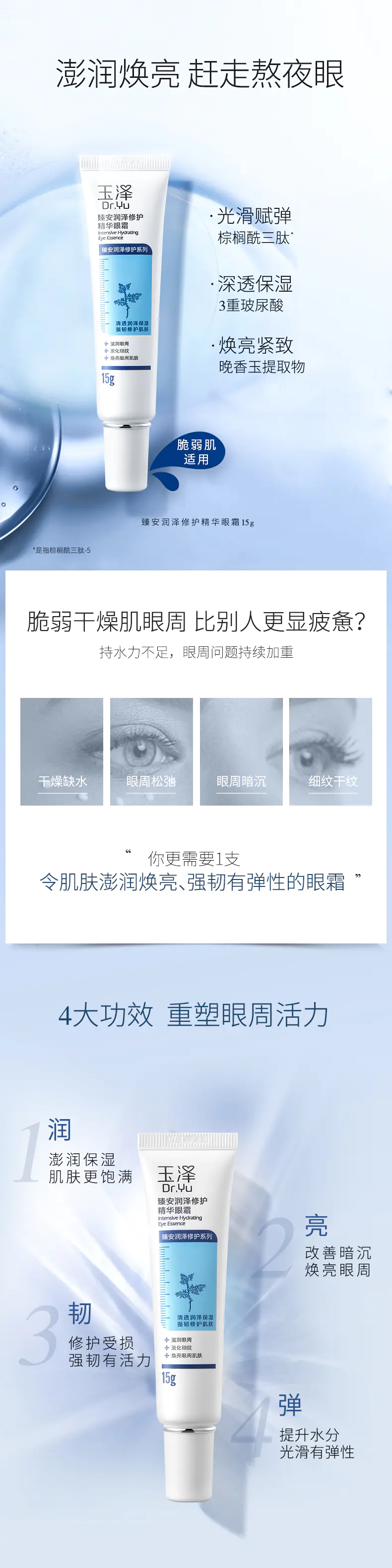 还有一些眼霜中常见的保湿成分,像透明质酸和多元醇类等,都能够很好地帮助眼周保湿,减缓眼周问题的形成。