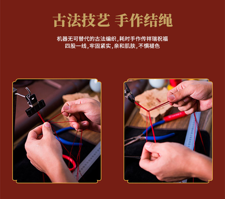机器的冰冷始终无法替代手心的温度,所以,KADER转运红绳一直以来都是沿用古法技艺编织结绳。而且这款红绳既牢固又结实,亲和肌肤,不惧褪色,还有非常美好的寓意,所以也十分适合情侣之间互相赠送哦!