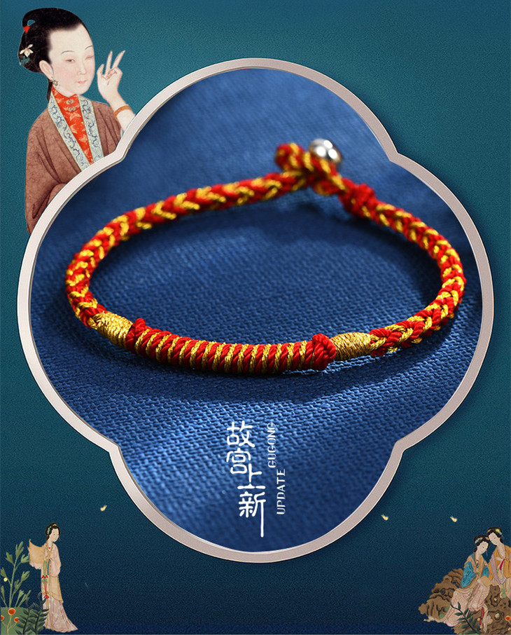 转运红绳,经过重重国潮美学设计诞生于世,古老的中国红,编织灿烂得金线,其灵感来源于清朝嘉庆时期大红缎绣彩云水金龙染银鼠皮边男祫朝服,传鸿运高照之意,遵帝王之气,十分大气磅礴!