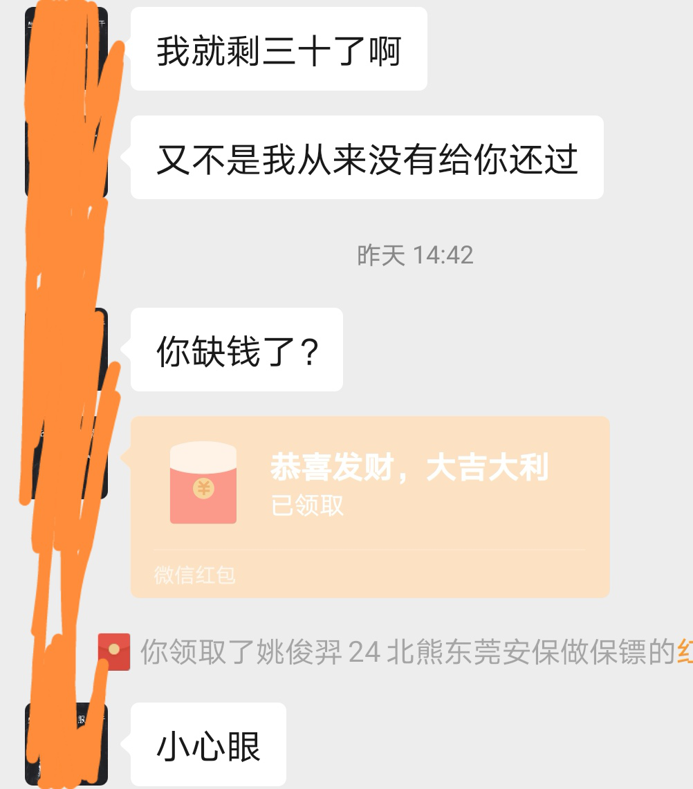 度是这样的,就剩30了啊,又不是从来没给过你,你缺钱啦?你小心点眼?于是我很懵逼的问我朋友应该怎么回答!以下朋友建议!