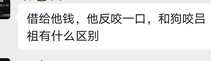 但是他没有钱,所以就找我借了,但是他能找我借。说明他这人品也不咋地