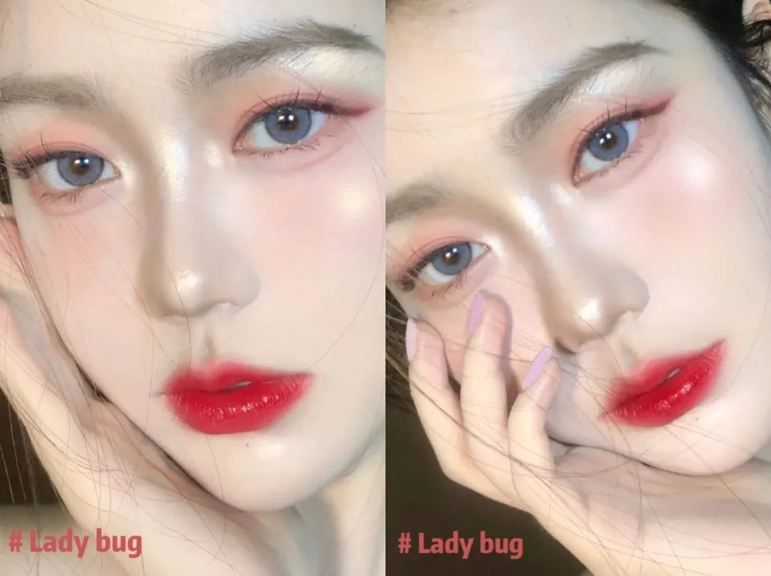 这样打造出来的唇妆,层次分明,有点楚楚可怜的感觉。