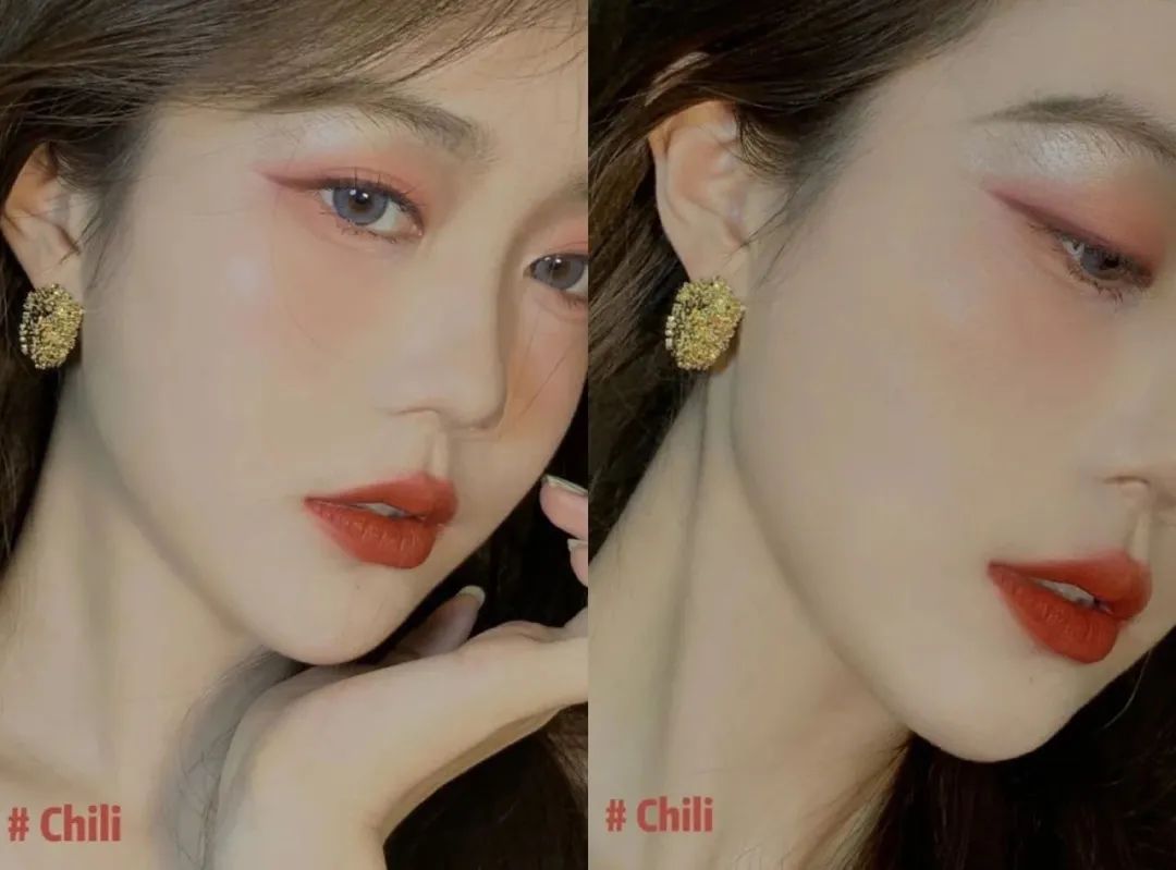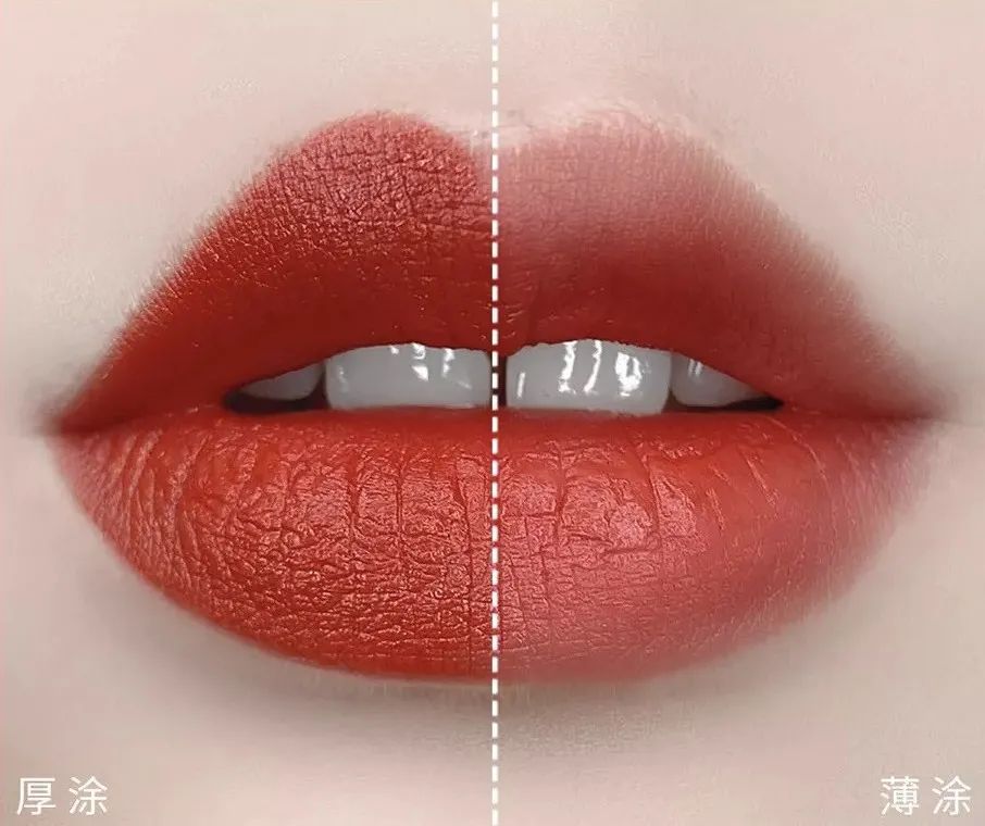 薄涂带一丝元气橘调,厚涂就是铁锈砖红涂上就是画报女郎的感觉。