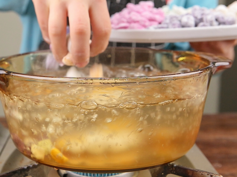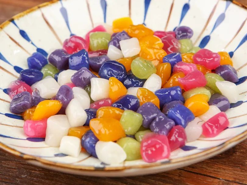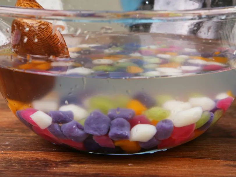 六色Q弹小芋圆就完成了,沸水下锅,煮至漂起后再煮三分钟即可