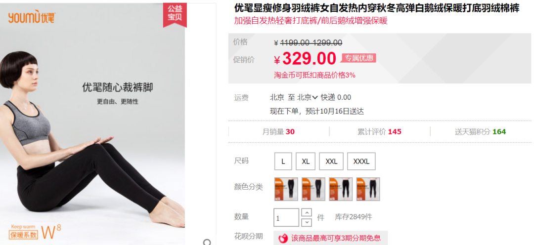 这么好的鹅绒裤,官方原价还是一如既往的死贵死贵:329元 。