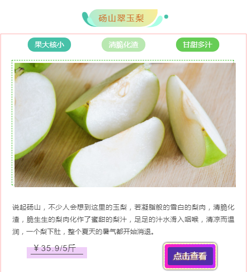 本周有:砀山翠玉梨、桥头地瓜、松饼、可生食的鸡蛋 、新疆金丝南瓜、麦麸燕麦饼