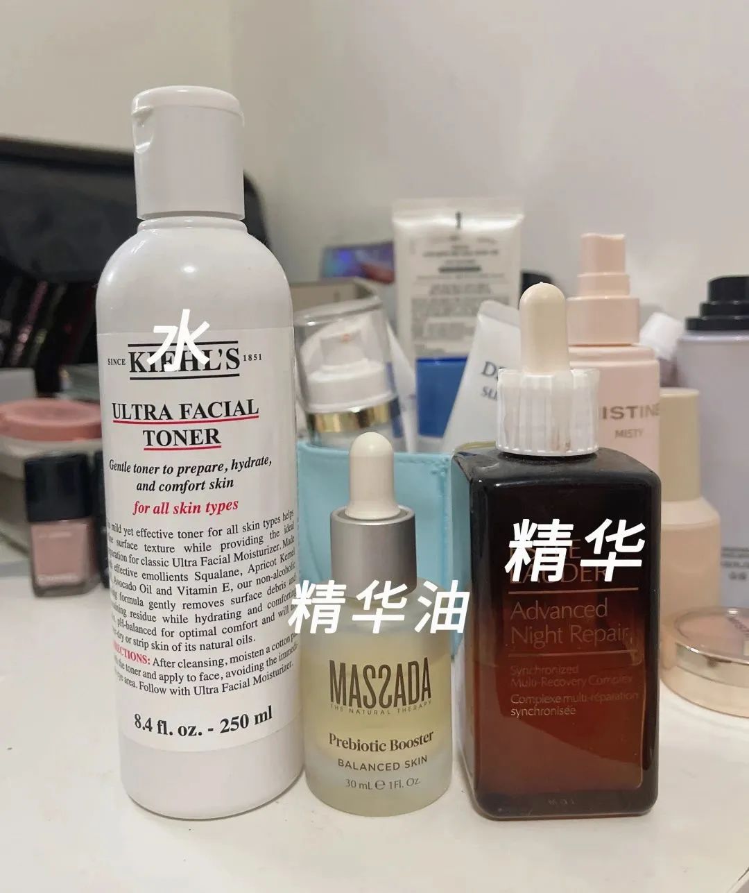 现在她每天护肤步骤简单到不行,水+精华+油,油做最后一层封底。