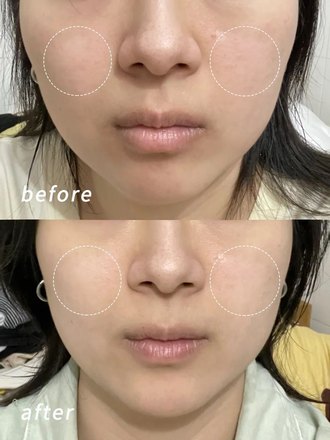 打卡两周,脸部泛红就退了不少,真的惊喜到我!后续坚持用皮肤很稳定,不会复红。除此之外,小颗粒也少了,本人甚是满意👇🏻