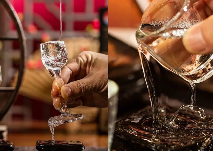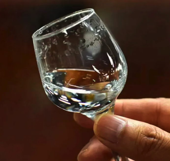 酒越老熟,越稠润,还有明显的挂杯痕迹,酒痕不会掉落,像满天星一样又圆又密的附着在杯壁。