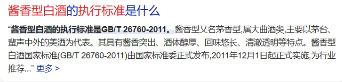 执行标准一栏的标注:GB/T26760-2011,质量等级:优级,是国家规定的酱香型白酒执行标准(品质上,优级>一级>二级)