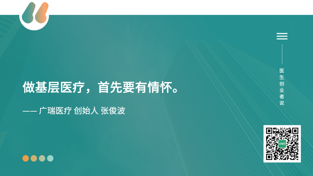公立资源的诱惑、资本的诱惑、产业的诱惑、高利润行业的诱惑,基层创业者在成长路上会面临很多诱惑。疫情这次考验,让张俊波更加坚定基础医疗行业的未来:“基层综合医疗,在未来充满可能性。其他行业,很少有能像医疗服务行业这样在危机后快速恢复生机”。