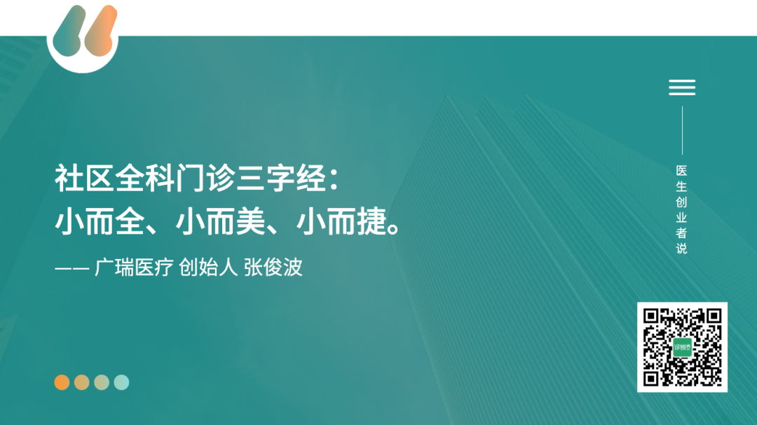 社区医疗究竟该是什么样子?能连锁的门店应该是什么标准?这是张俊波经常被问及的话题。