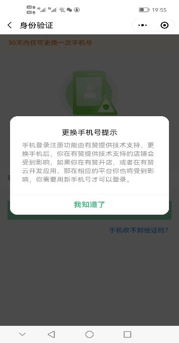 第二步, 出现身份验证页面 ➡️ “更换手机号提示” 页面 ➡️点击 “我知道了”