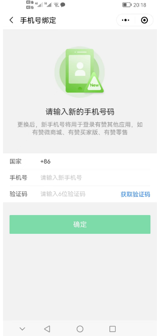 手机号绑定 ➡️填写新的手机号码,以及验证码,然后确定,就可以成功绑定新的手机号了。