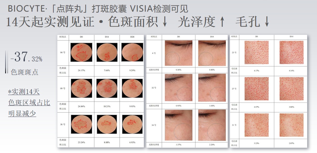 斑点↓ 纹理↑ 紫外线色斑明显改善!