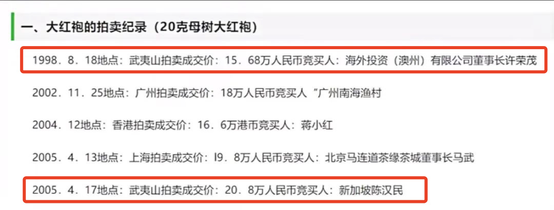 民国时曾有武夷山九龙窠大红袍茶拿到市场拍卖,20克拍出了15.68万元的天价,2005年拍卖价更是达到了20.8万元!