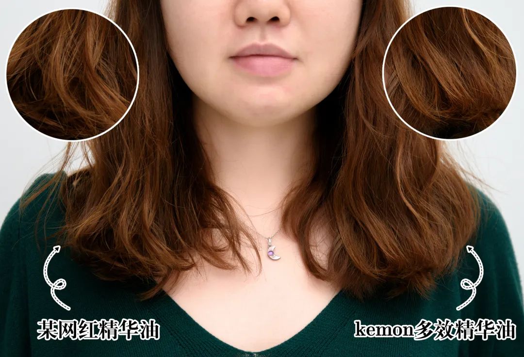 清爽得来护发效果也不差。我头发剪短了没那么明显,找大沙发雪梨拍Kemon修护精华油的对比,她头发特别多、厚、干,我用两泵的量、手指梳顺了,炸毛明显收拢了,有明亮的反光~