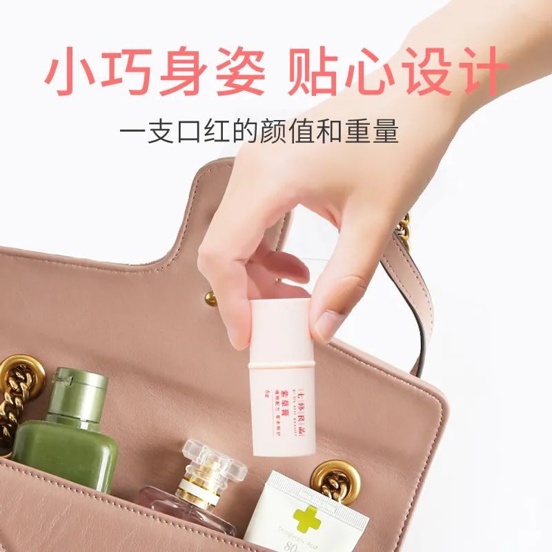 5.轻巧便携:迷你管状不透明盒装设计,保护植物活性成分,旋转底座,双盖保护,一抹即享,口红般轻巧便携。