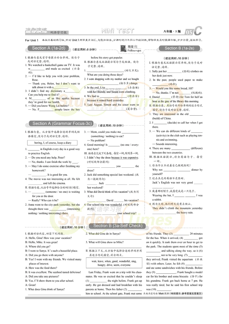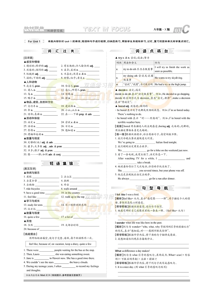 八年级 X版同步辅导 C刊