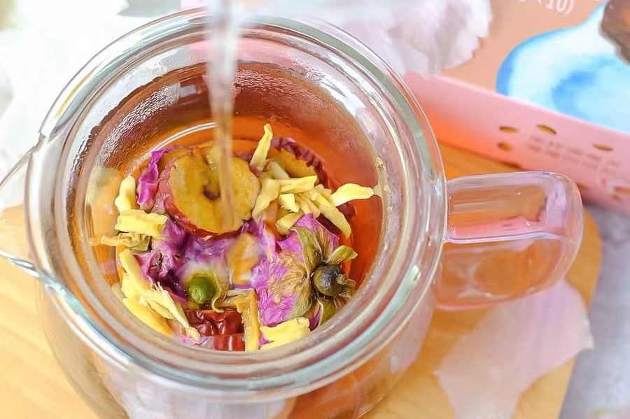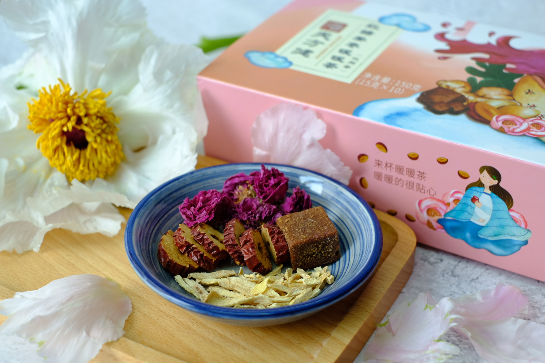 一包满满都是料,加入开水后,大朵的玫瑰花慢慢绽放,飘散着愉人花香,喝上一口香甜暖心。茶方中的原料可以反复冲泡,随着姜味渐浓,喝完后身体暖暖的。