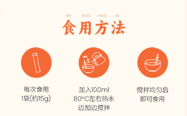 建议早上9点前,水温80℃以上,作为代餐搭配早点食用,随时可食