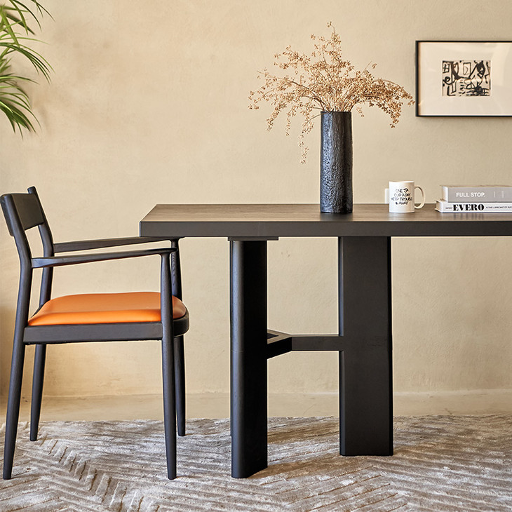 Wass餐桌还原实木本质,简洁而富有设计感,甄选柚木色泽自然,超大尺寸桌面展露优美的木纹肌理,桌面加厚处理更加温润有质感。三角几何底座勾勒艺术美感,看似轻巧,实则稳固,极简的线条更加衬托出木质的自然静雅,不挑家居风格,让餐厅更有氛围感。
