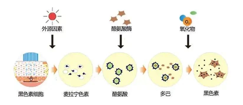黑色素不仅吸收一定程度的紫外线辐射,保护我们的DNA免受致癌损伤,而且还充当抗氧化剂,消除几乎所有衰老迹象中涉及的破坏性自由基。 当然,对于爱美的你来说,变黑通常是我们不愿意看到的。 除了医美治疗外,有些外用成分也能有效地帮助我们解决此类问题。 想要淡化黄褐斑,你得记住这4个护肤品成分烟酰胺、氨甲环酸、熊果苷和果酸。 熊果苷是氢醌的衍生物。它抑制酪氨酸酶和DHICA,并阻止黑素体成熟。它的作用是剂量依赖性的。在一项对54名黄褐斑患者进行的8周研究中,2.51%熊果苷在改善黄褐斑方面明显比安慰剂有效。脱氧熊果苷,熊果苷的合成衍生物,也是有效和安全的。 氨甲环酸作为一种纤溶酶抑制剂,主要通过抑制纤溶酶-纤溶酶原途径而发挥作用,花生四烯酸(AA)和 α-黑素细胞刺激激素(α-MSH)随着角质细胞中纤溶酶的增加而增加,前列腺素(PG)作为花生四烯酸的代谢产物能刺激黑素合成及黑素细胞刺激素的生成,因此通过抑制血纤维蛋白溶酶通路,氨甲环酸会减少黑色素的生成,从而达到淡化色斑的效果。烟酰胺,化学名为吡咯-3-甲酰胺,又名尼克酰胺,是辅酶Ⅰ(即NAD+,烟酰胺腺嘌呤二核苷酸,是细胞能量代谢和氧化应激适应性反应的关键辅酶,以NAD+为中心的哺乳动物衰老理论认为,NAD+水平决定了衰老的速度和程度)和辅酶Ⅱ(即NADP+,烟酰胺腺嘌呤二核苷酸磷酸)的组成部分之一,在机体内参与多种氧化还原反应,与烟酸(维生素B3,是人体必需的13种维生素之一)的生理作用相似,但无明显扩张血管的作用。在化妆品中,烟酰胺常作为美白成分使用,其机理有:①作用于已经产生的黑色素,减少其向表层细胞转移 ;②加速新陈代谢,促进含黑色素的角质细胞脱落 ;③还促进表皮层蛋白质的合成,改善肌肤质地。有研究表明3%烟酰胺精华液对黄褐斑的改善作用。黄褐斑是一种色素沉着性疾病,具有难治疗、易复发的特点,而且研究表明黄褐斑皮损中黑素细胞的数目并没有增加,但是黑素细胞功能亢进。果酸,又名α-羟基酸,具有强渗透性,可透过角质层被皮肤吸收。可从各种水果、酸奶、果酒等有机物中提取获得。1.通过去除一定厚度的皮肤层(如浅层、中等深度、深层),进而诱导表皮再生,重塑表皮细胞。