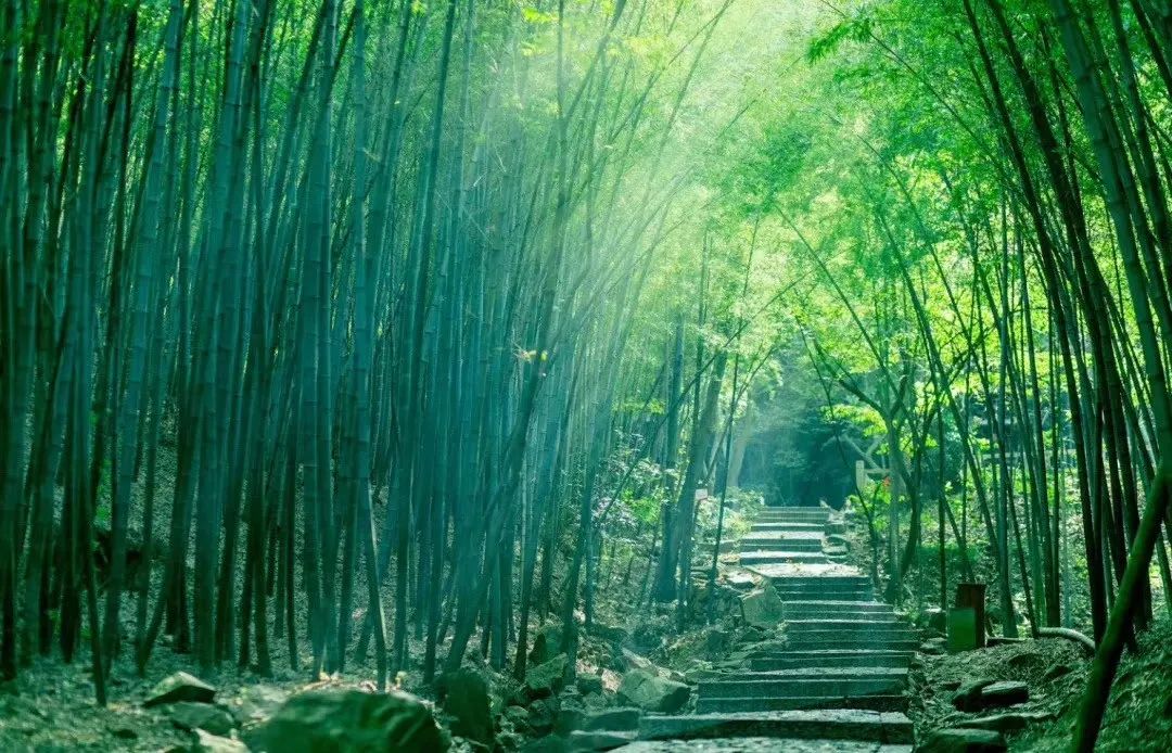 穿过郁郁葱葱繁茂竹林,