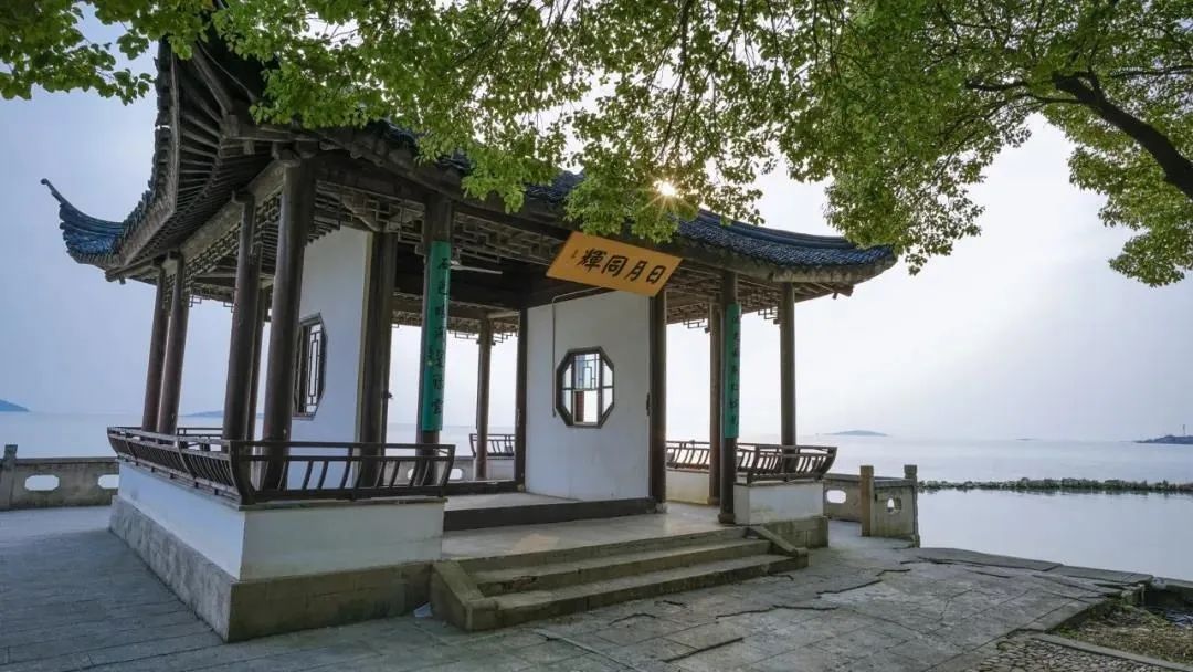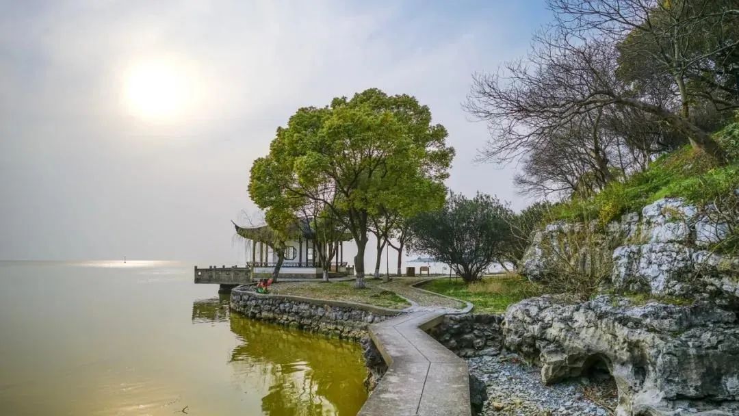 远处太湖波澜微伏,