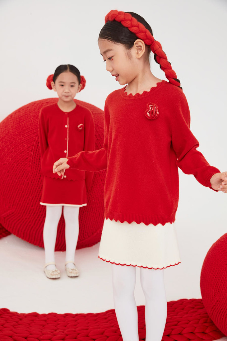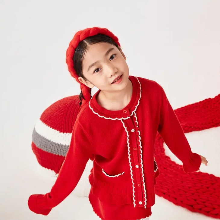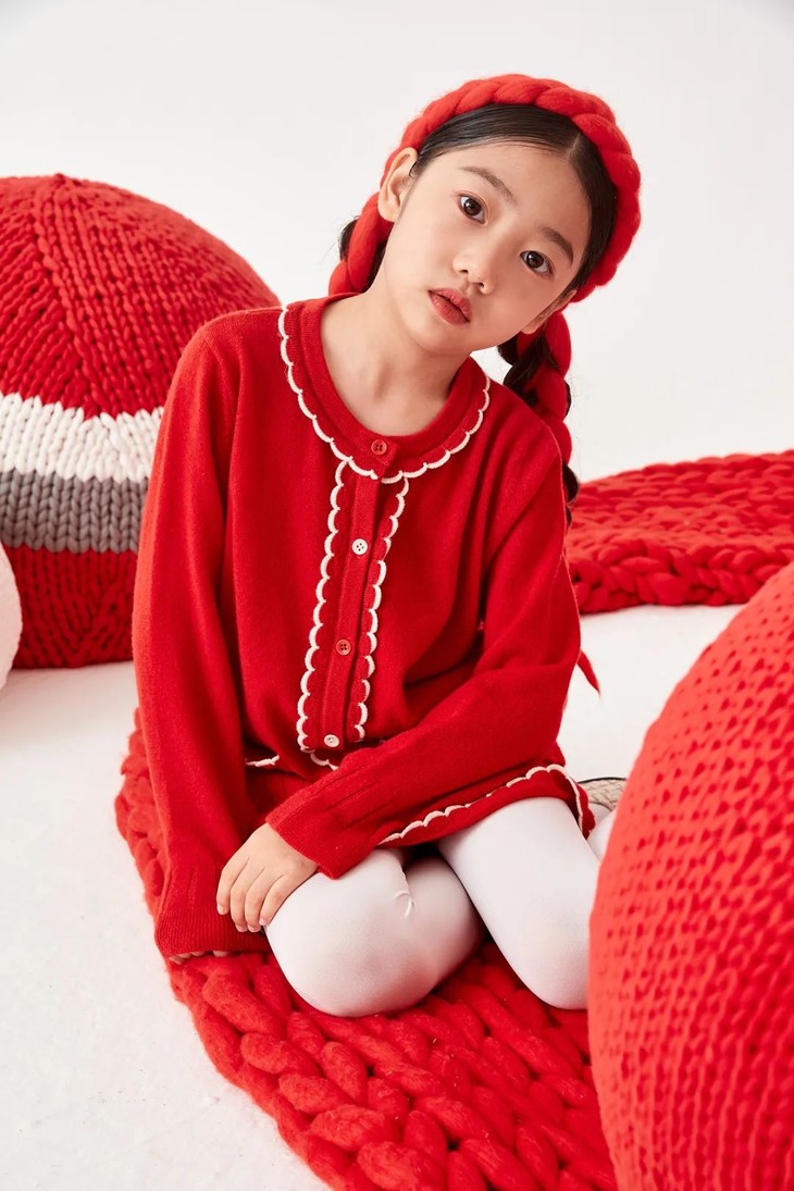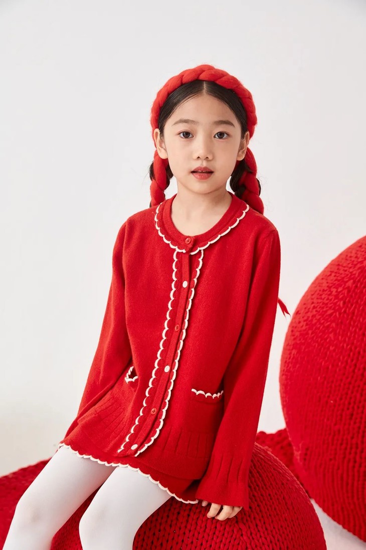 Sandriver 秋冬 圆领花边羊绒针织女童开衫