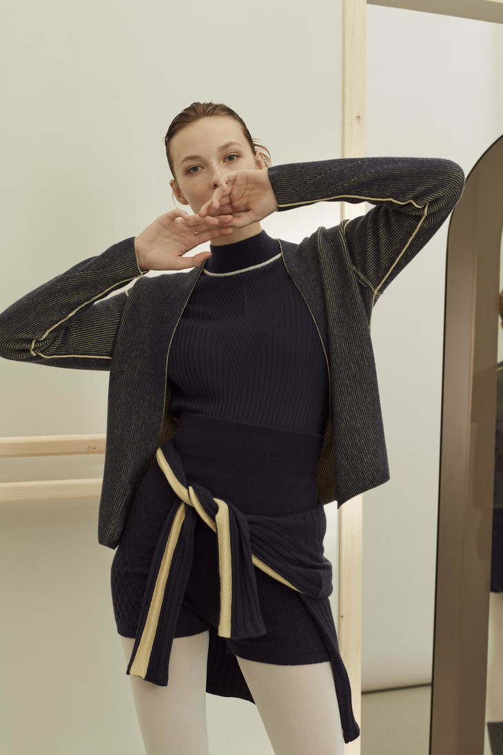 精选阿拉善山羊绒,舒适保暖,圆领拉链式设计方便穿搭。撞色竖向条纹修饰身材曲线。在简洁的设计中增添更多的设计点。整体基调沉稳优雅,适合于多种场合的穿搭,轻松在办公和运动休闲的场合间切换。