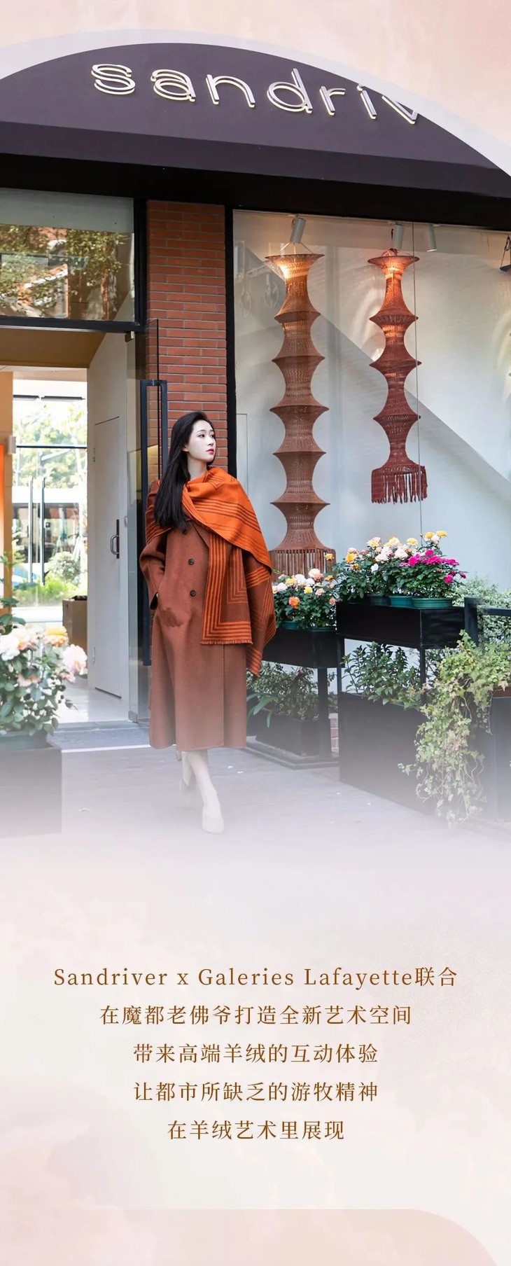 历年巴黎时装周亮相,享誉世界的艺术羊绒品牌 「SANDRIVER沙涓」,阿拉善自有牧场纯种羔羊绒,日本国宝设计师小筱顺子,上海自有基地精工细作,赋予您着装体验和生活方式的新改变。