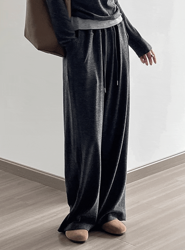让它不会像某些聚酯纤维阔腿裤一样贴腿显肉,怎么看都是“腿在裤中晃”的松弛感。